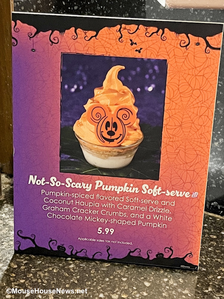 Sticking around the Polynesian Resort, another returning fall treat is the Mickey Pumpkin Soft-Serve at Pineapple Lanai. It’s another favorite here at MouseHouseNews.net. Made of pumpkin-spiced flavored soft-serve and coconut haupia with caramel drizzle, graham cracker crumbs, and a white chocolate Mickey-shaped pumpkin decoration, it’s the kind of treat that absolutely screams fall.