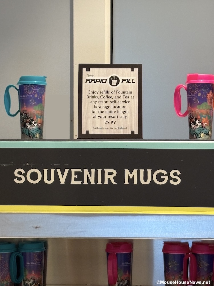 If you’re staying on Walt Disney World property for any length of time, you might want to consider the purchase of a Rapid Fill Refillable Mug. You can purchase a Rapid Fill Refillable Mug at any Disney Resorts Collection Hotel Quick Service location for $22.99. Thankfully, it looks like this is one of the few items that did not fall victim to the recent price increases that hit Disney World earlier this month.