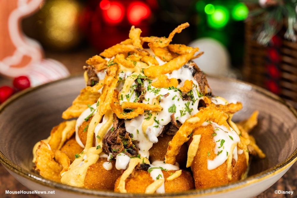 - Holiday Pot Roast Loaded French Fries (NEW) topped with pot roast, beer-cheese sauce, crispy onions, and horseradish mustard (Available during Mickey’s Very Merry Christmas Party only)