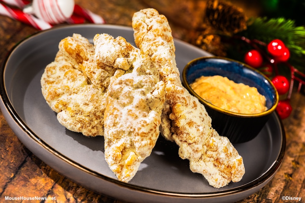 - Snow Cheese Chicken Strips (NEW): Dusted with a sweet-and-savory white cheddar powder served with a side of kimchi aïoli (Available during Mickey’s Very Merry Christmas Party only)