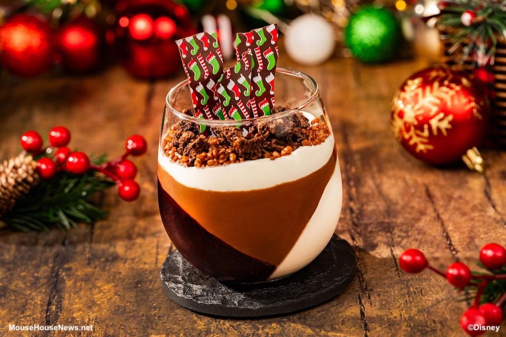 - Flourless Black Forest Trifle (NEW): Layers of cherry liqueur compote, chocolate crémeux, Chantilly cream, and festive chocolate pieces (Available during Mickey’s Very Merry Christmas Party only)