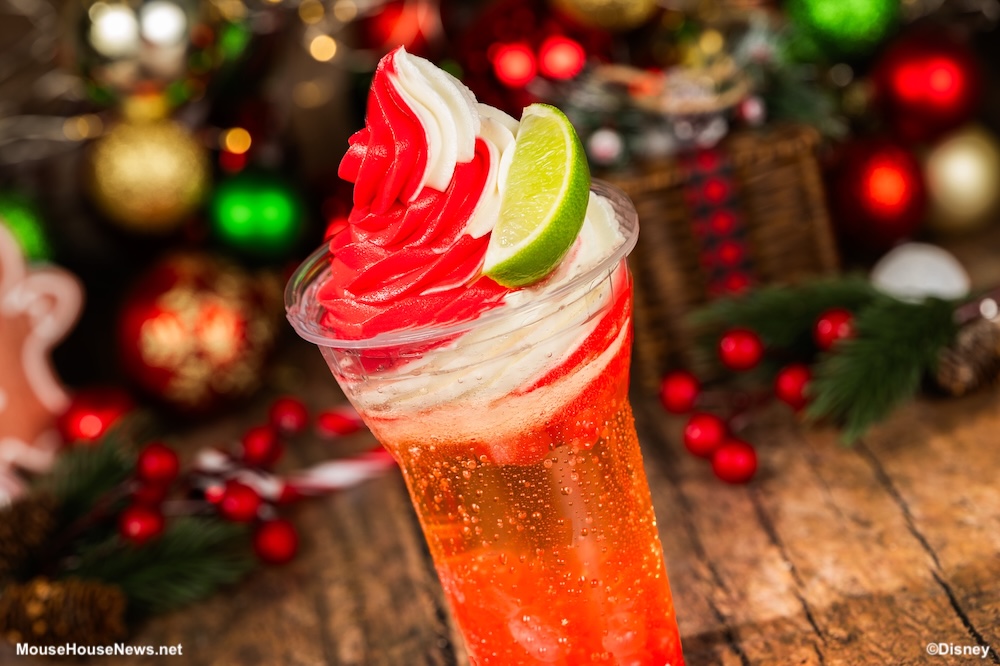 - Pomegranate Yule Float (NEW): Ginger Ale with DOLE Whip Pomegranate and vanilla soft-serve, pomegranate boba pearls, and a slice of lime (non-alcoholic) (Available during Mickey’s Very Merry Christmas Party only)