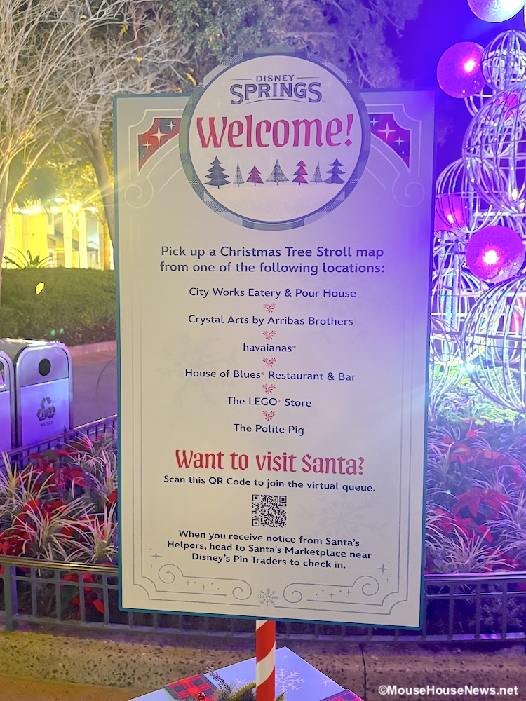 If you haven’t made your way over to Disney Springs for the Christmas Tree Stroll yet, you really should! It’s a fun, free experience for all ages. Participating is simple. Stop by one of the map distribution locations to grab your map and stickers. Then, just keep an eye out for the extravagantly decorated trees throughout the shopping and entertainment district. Each time you spot one, mark it with the corresponding sticker. Even if you don’t have time to grab a map and complete the full activity, you can still wander around and admire the decorative trees you come across.