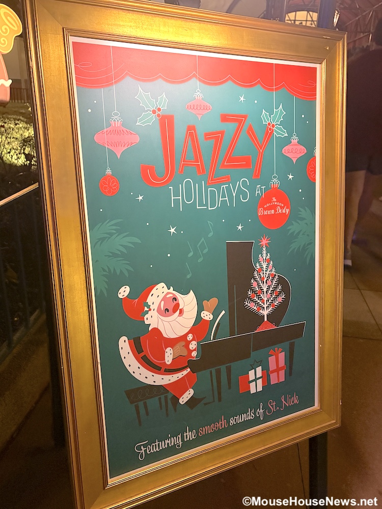 The food at Jollywood Nights can be a little more upscale than what you would find at Mickey’s Very Merry Christmas Party over at Magic Kingdom. A good example of this is the Jazzy Holidays offering at The Hollywood Brown Derby. Jazzy Holidays offers small plates such as shrimp cocktail, pork belly bao, and jazzy sliders. There is also a variety of alcoholic and non-alcoholic beverages. While you eat, enjoy some holiday tunes with a live singer on piano. Bon appétit!