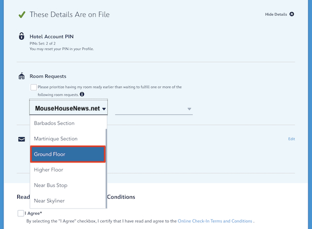 Requesting a ground floor room can be made during the Online Check-In process