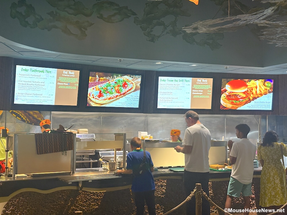 During a stop at these locations, you still visit one or more food stations depending on what you’re ordering. After you’ve ordered your food, you’ll wait for it to be prepared/assembled. Finally, once you have your meal, you head to the register and pay. Gasparilla Island Grill at Disney’s Grand Floridian Resort and The Mara at Disney’s Animal Kingdom Lodge are a couple of examples.