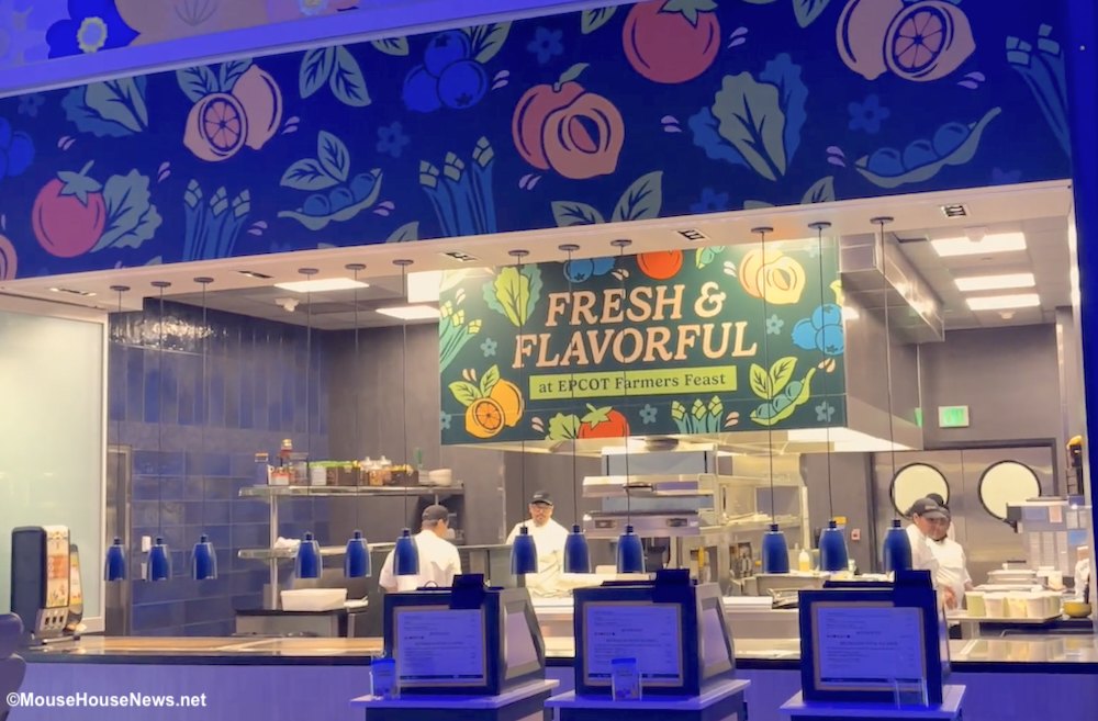 You’ll find Farmers Feast located inside CommuniCore Hall in World Celebration. That location is an easy stop as you explore the gardens, topiaries, and other Outdoor Kitchens scattered throughout the park.