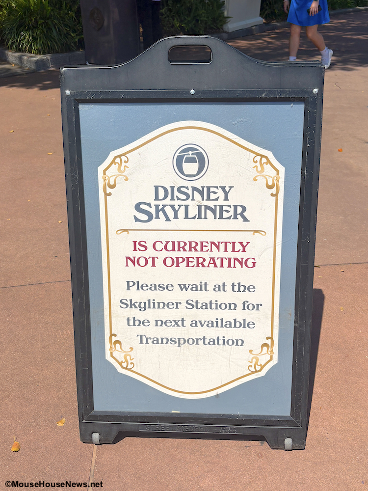 The MouseHouseNews.net team was visiting EPCOT yesterday when we got stuck on the Skyliner at Disney’s Riviera Resort. There was a 15 minute delay while Cast Members worked to get the gondolas running again. In fact, we spotted a couple of gondolas be evacuated just before the all-clear was given and we were able to continue our journey. There seemed to be a technician of some sort looking in each gondola as they entered the EPCOT International Gateway station, so that seemed a little odd. We soon realized, however, that operations did not last long. When we were about to park hop to Disney’s Hollywood Studios, we saw signs indicating that the Disney Skyliner was out of service.