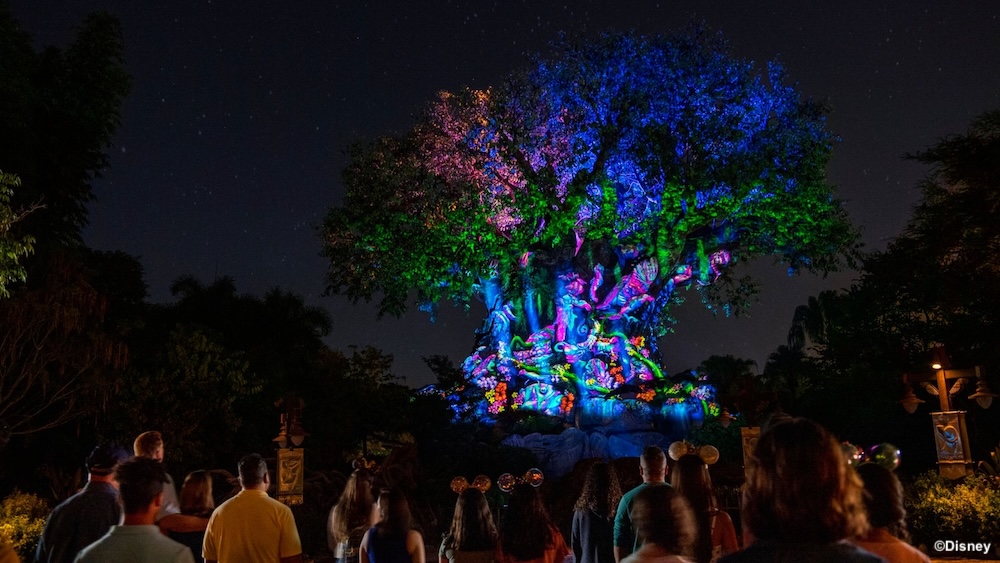 As was previously mentioned, Animal Kingdom does not have a nightly fireworks show. While it does not offer fireworks, the park does have a projection show known as Tree of Life Nighttime Awakenings. During the show, music accompanies images that are projected onto the Tree of Life. When available, Tree of Life Awakenings begins after dark and repeats approximately every 10 minutes until park close. Note that it’s more common to see this nighttime entertainment in fall and winter when sunset is earlier. Unfortunately, it may not be offered during your trip. Be sure to check your My Disney Experience for updated showtimes and availability,